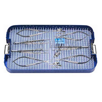 顯微外科手術(shù)器械包 HC-X801-1詳細信息: 顯微鑷15cm 0.3mm 直2把, 顯微持針鉗14cm 直1把,顯微剪14cm直1把,顯微止血夾大2只,顯微止血夾小2只,平頭沖洗針1只。配帶硅膠器...