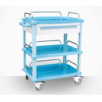 ABS治療車 FG-E-03產品介紹:尺寸:783*504*1042MM1.臺面采用ABS注塑而成,上面配有透明軟玻璃;2.立柱和側板采用鋁合金型材,外形美觀精致;3.抽拉式ABS副工作臺攝及,可以延...