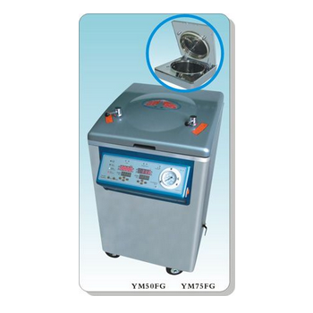 YM50FG立式壓力蒸汽滅菌器(智能控制+干燥型) 產品特點:1、不銹鋼材質制成,經久耐用;2、輕啟翻蓋結構,上蓋自動彈起,輕松省力省空間;3、控制面板的斜面設計,便于觀察操作;4、微電腦程序控制滅菌...